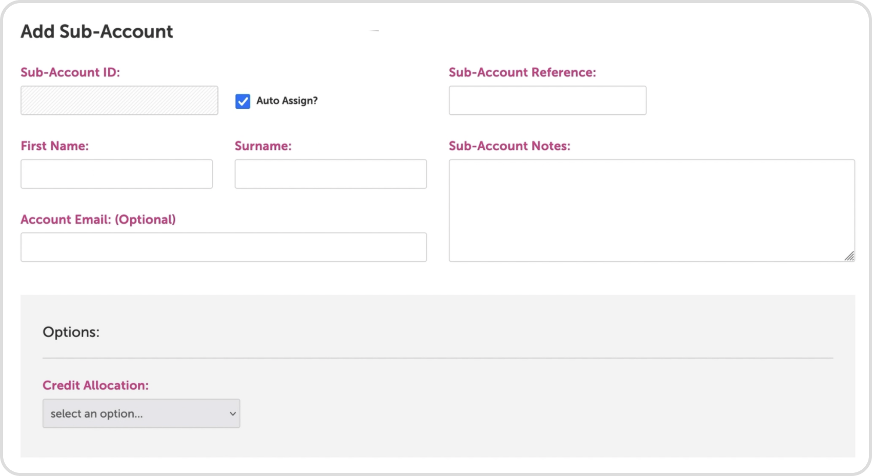 Sub-Account Reference (for your internal use)