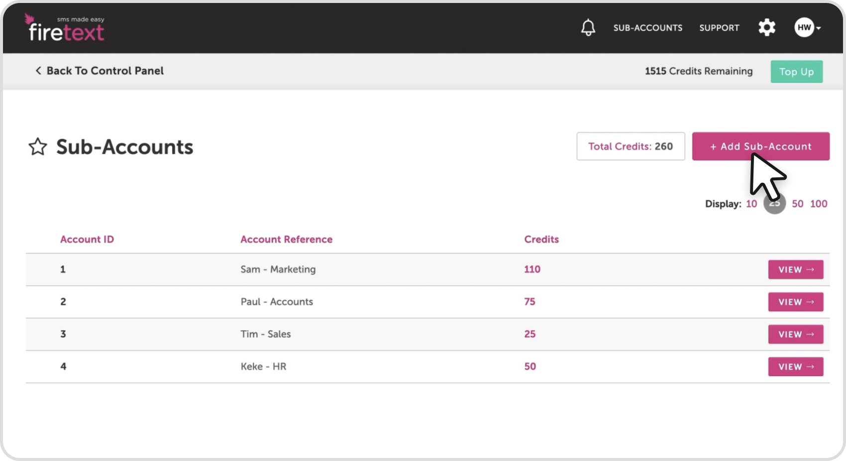 STEP 1: Go to the sub-accounts section. In the top-right corner of your account, click on SUB-ACCOUNTS.