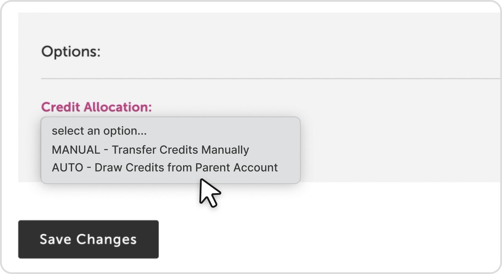 STEP 4: Choose how to share credits. You can either decide to manually allocate credits, or let sub-accounts automatically draw them from your master account.